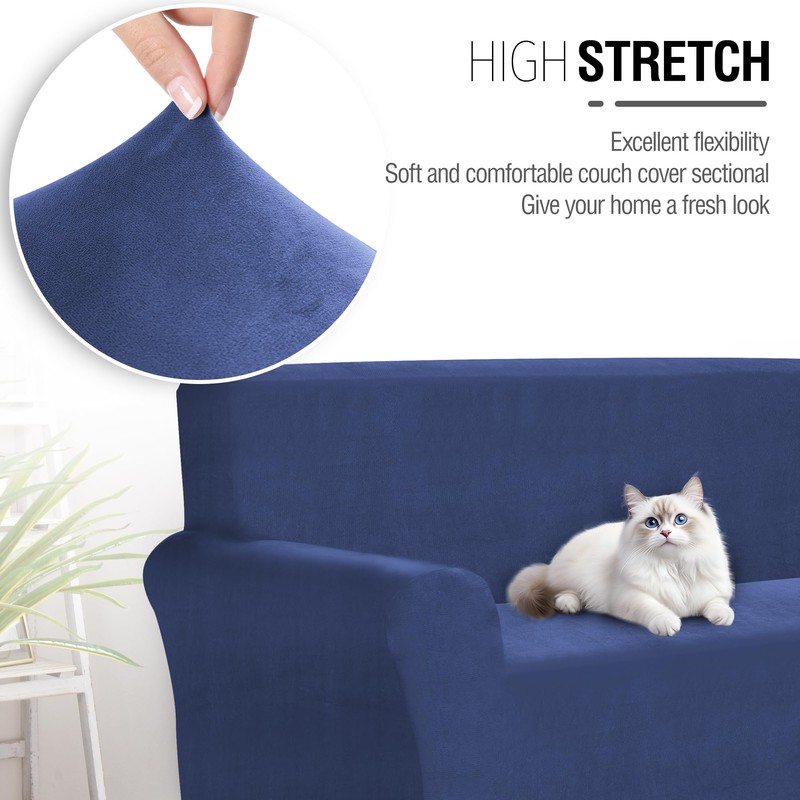 - HIGH ELASTICITY: The stretchy corner sofa cover l shape is crafted from 85% polyester and 15% spandex fabric, which possesses high elasticity to envelop your sofa in a 360-degree manner. Our versatile velvet couch covers for sectional sofa set is more flexible can suitable for all types of sofas, such as L-shaped sofas, U-shaped sofas, corner sofas