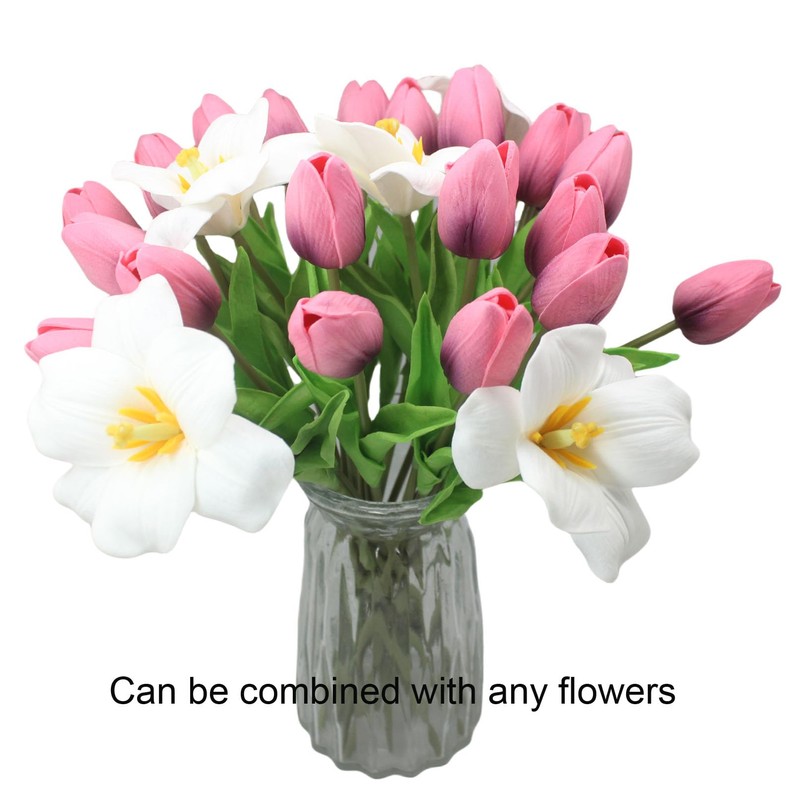 - ***Artificial flowers***: Real touch fake tulips keeps beauty and fresh-looking for a long time,and is the best choice for people who are allergic to pollen. Artificial flowers also have the characteristics of strong plasticity, which can be used for folding, stringing, cutting, bending and other floral shapes.