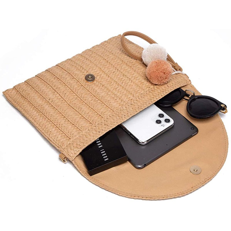 Alifyt Straw Clutch Bag Women Evening Handbag Straw Flat Summer Clutch Beach Bag, Style1-Brown