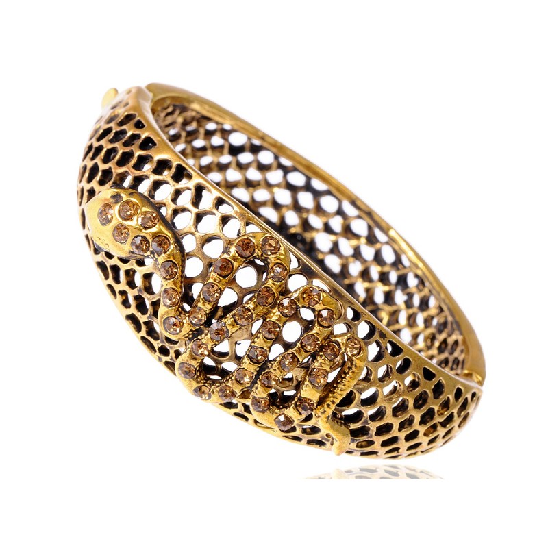 - High quality handicraft - This bracelet was hand crafted to assure the highest quality possible. The whole body is golden tone with hollow-carved design. Some crystal topaz are dotted in the snake to be more mysterious.