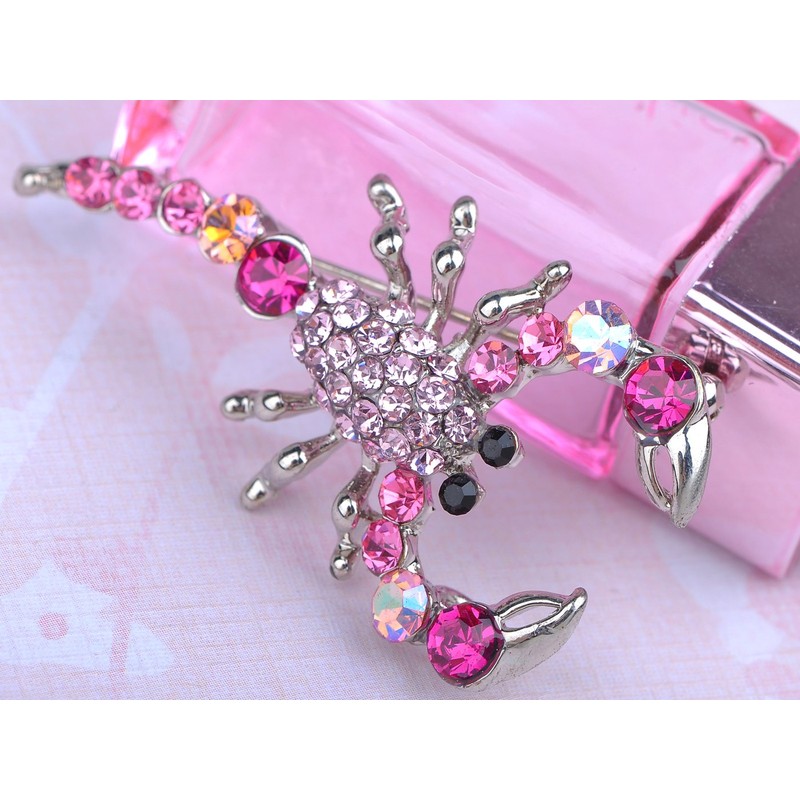 Alilang Hot Fuchsia Rose Pink Rhinestone Crystal Claw Scorpio Scorpion Pin Brooch