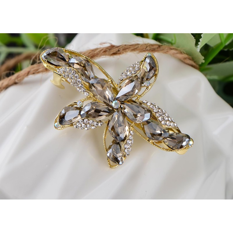 Alilang Luxury Glitter Sparkly Crystal Rhinestone Starfish Hair Barrettes Clips for Women, Gray, 1pc