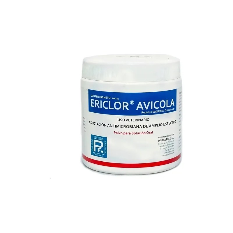 Este suplemento en polvo es fácil de administrar y viene en una presentación de 100 g que permite una dosificación adecuada sin desperdicios. Respaldado por el registro SENASICA Q-0021-050 y el aviso de funcionamiento C-9348, Ericlor ofrece confianza, seguridad y efectividad en cada uso.