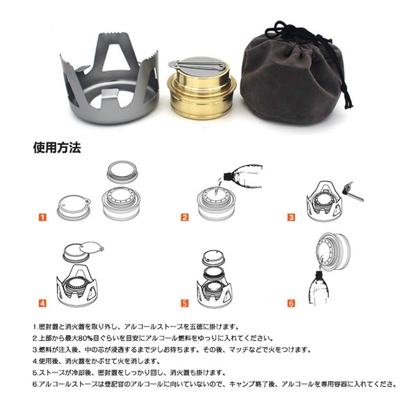 - 使用簡単:アルコールを注入するだけで、利用可能なシングルバーナー。燃料用アルコールでも全部使えるアルコールストーブです。