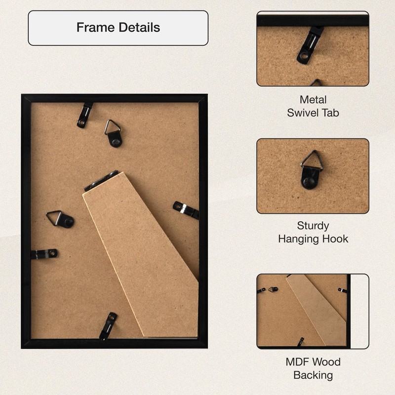- 4.PERFECT GIFT CHOICE: This premium black plastic picture frame delivers minimalist elegance that adds a distinctive touch to any décor style.It fits almost any setting like home,office,dorm,gallery and can be customized for weddings,graduations,anniversaries,kids’ artwork,or certificates.