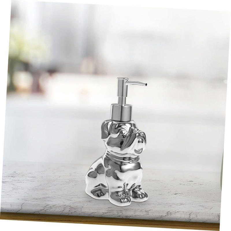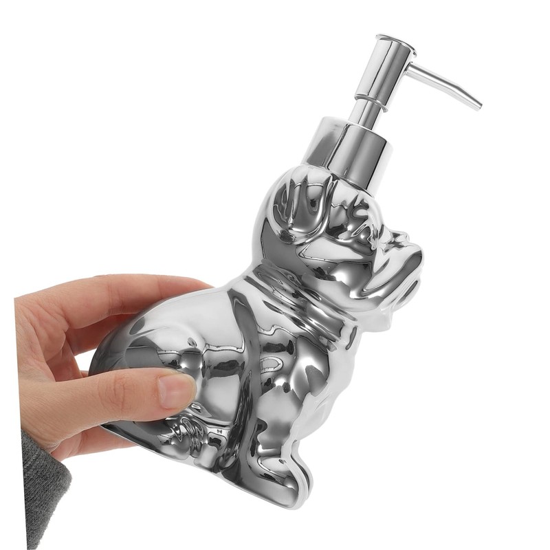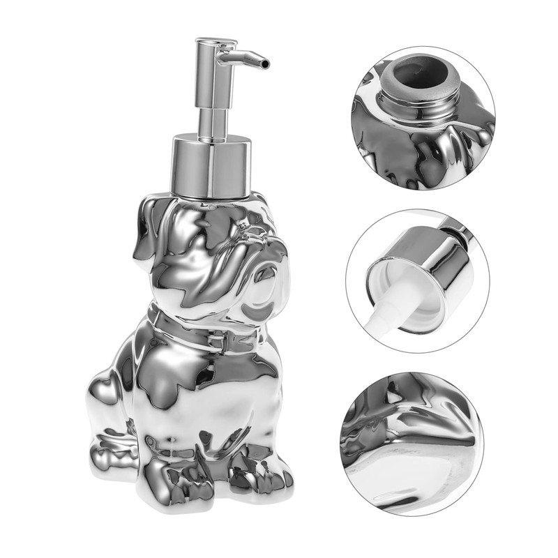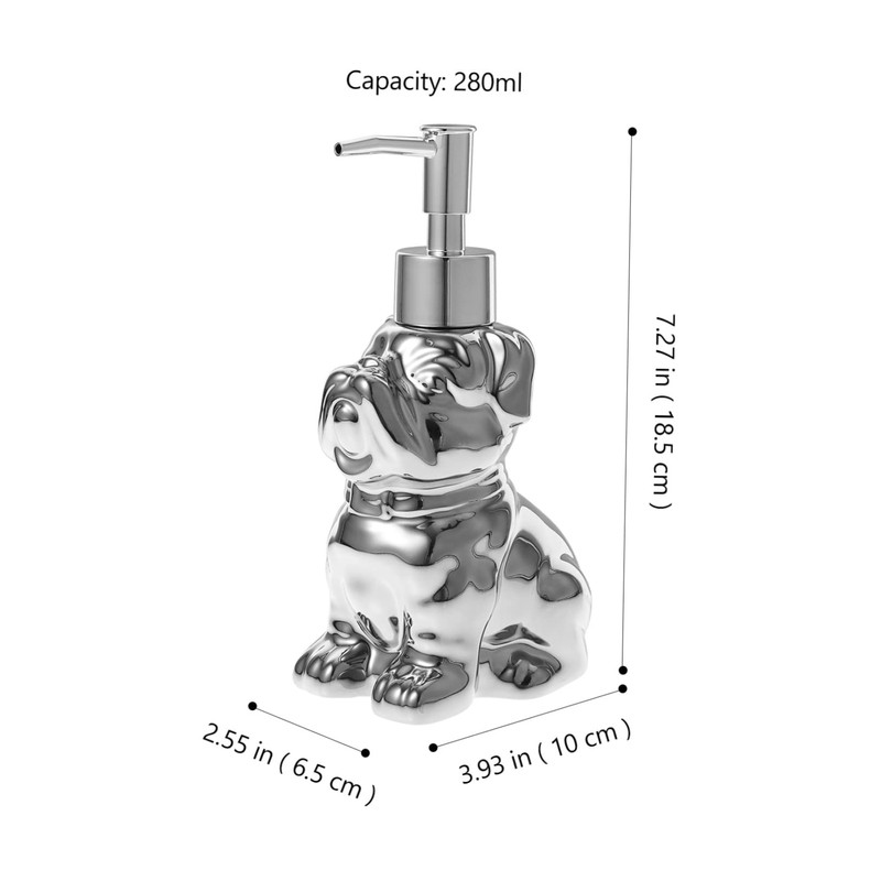Alipis Ceramic Dog Shape Soap Dispenser 280ml Refillable Shampoo Bottle Silver