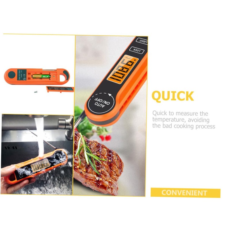 - Folding type waterproof probe kitchen cooking thermometer, multi-purpose, convenient and practical cooking tool.