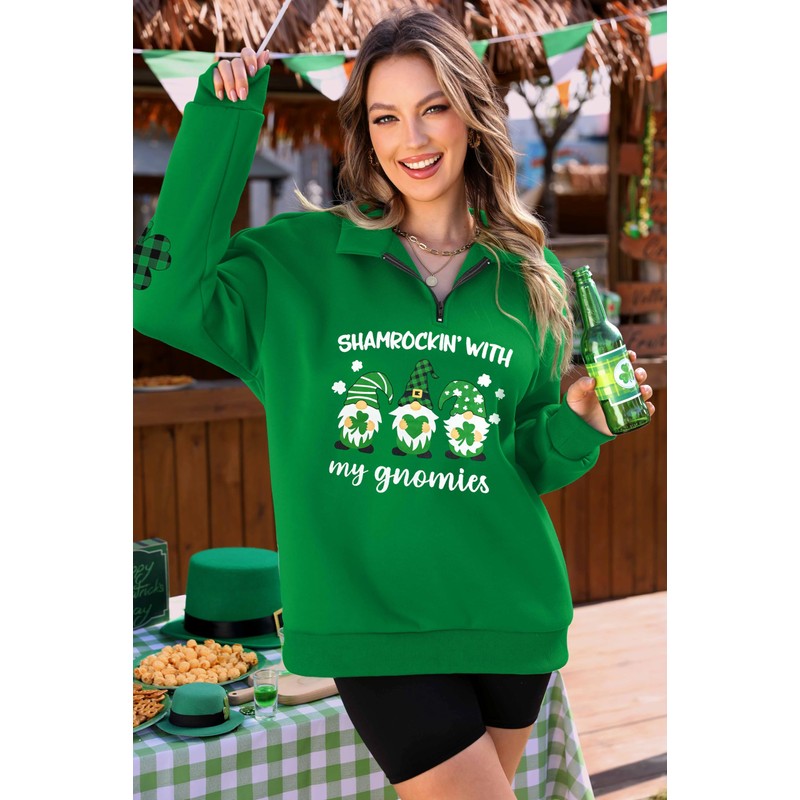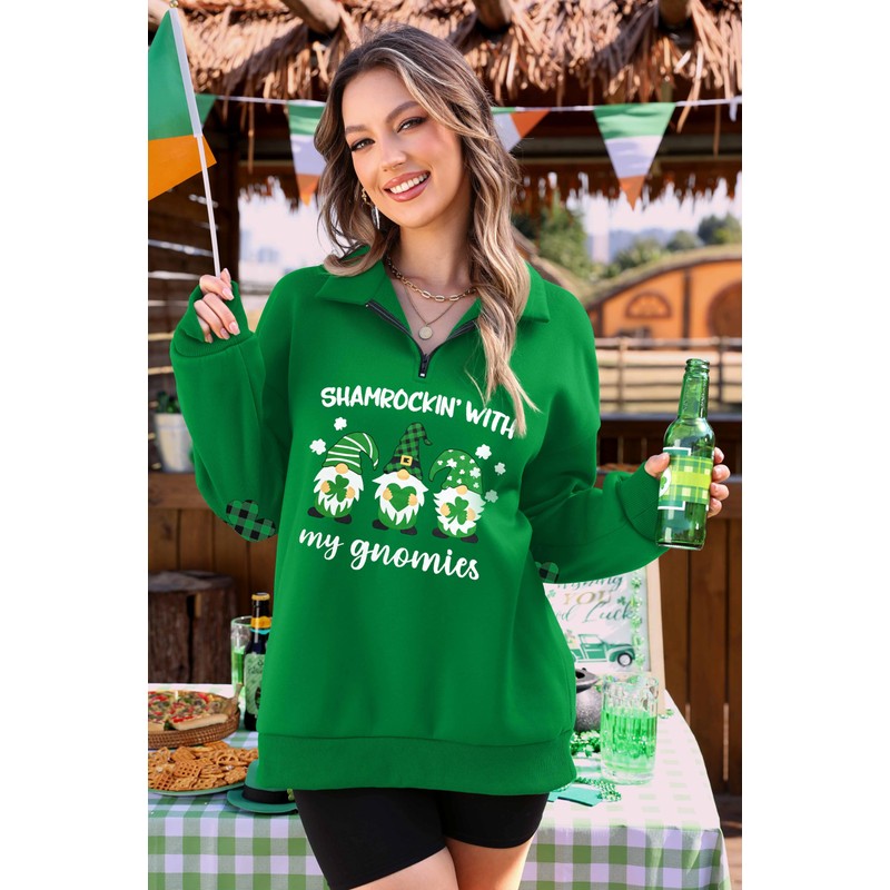 ALIREVERIE Womens St Patricks Graphic Party Shirts Clover Irish Oversized Quarter Zipper Sweatshirt Shamrockin With My Gnomies L