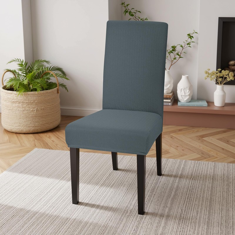 - Highly elastic fabric: this chair cover is made of soft and highly elastic pleated blind with polyester and elastane. The fabric is breathable and durable. The high stretch fabric allows the chair cover to fit better on different types of chairs. Thanks to a hidden elastic band, the chair cover can be easily attached to different chairs. Stretch chair covers are very easy to install and remove, which can instantly remake your home decor.