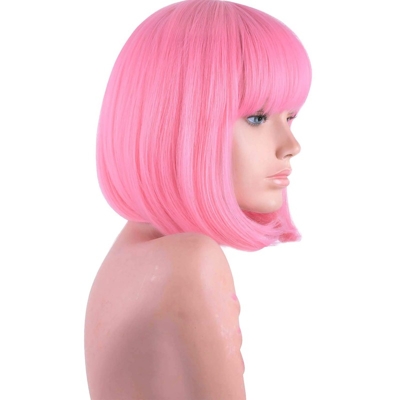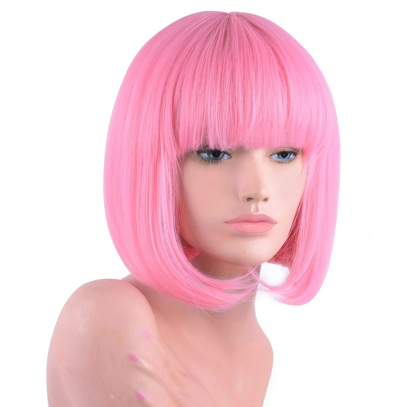 ALISY Wig, Bob Short Wig, Pink, 1 Piece (L-pink)