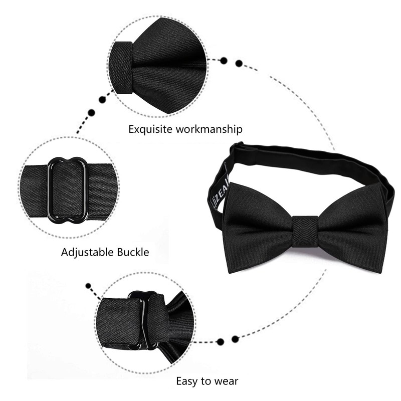 Alizeal Boys Adjustable Pre Tied Wedding Party Tuxedo Bow Tie, Black