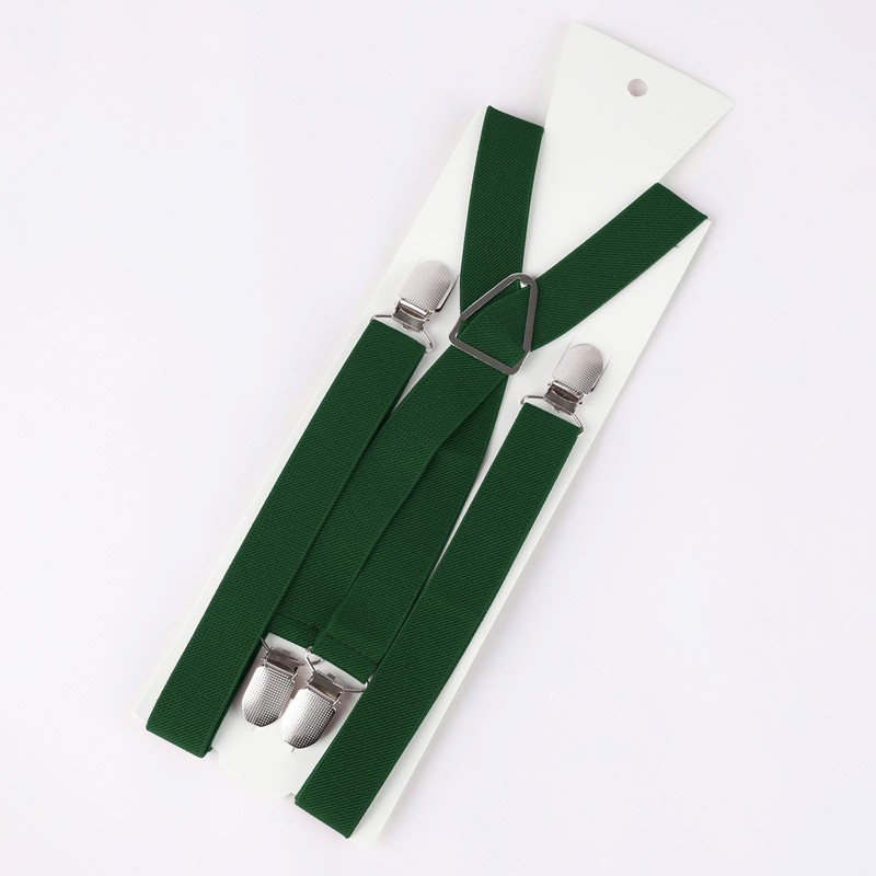 Alizeal-Men's Solid Skinny Suspenders X Shape For With 4 Clips One Size Dark Green