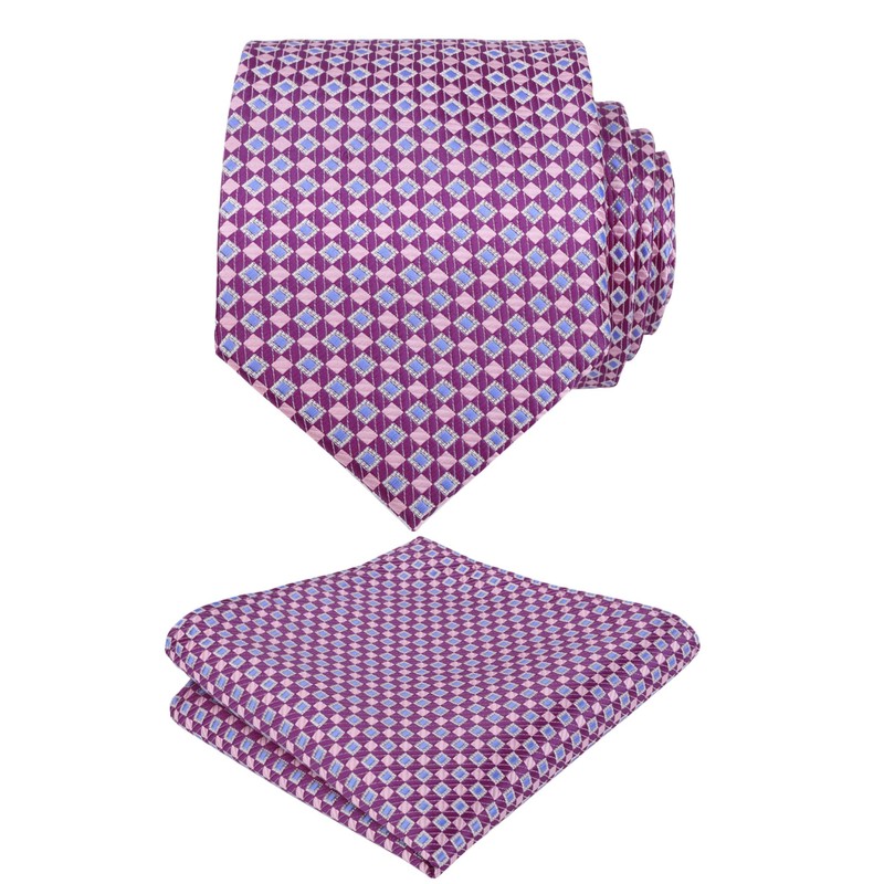 Alizeal Mens 3.15inches Geometrical Pattern Tie with Pocket Square Set, Magenta+Pink+Blue