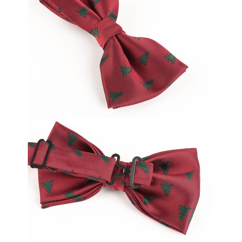 Alizeal Mens Maroon Background with Cedar Pattern Pre-tied Christmas Party Bow Tie, 016