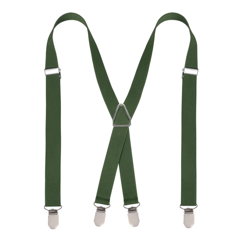Alizeal Solid Skinny Braces X Shape for Men with 4 Clips, Olive Green