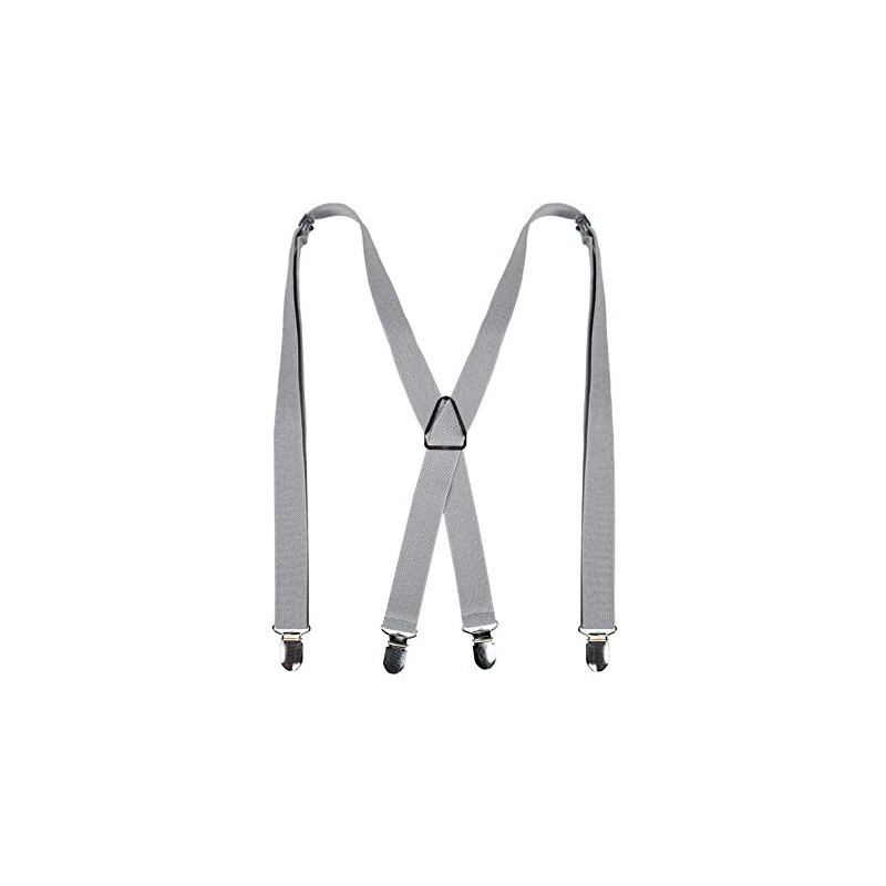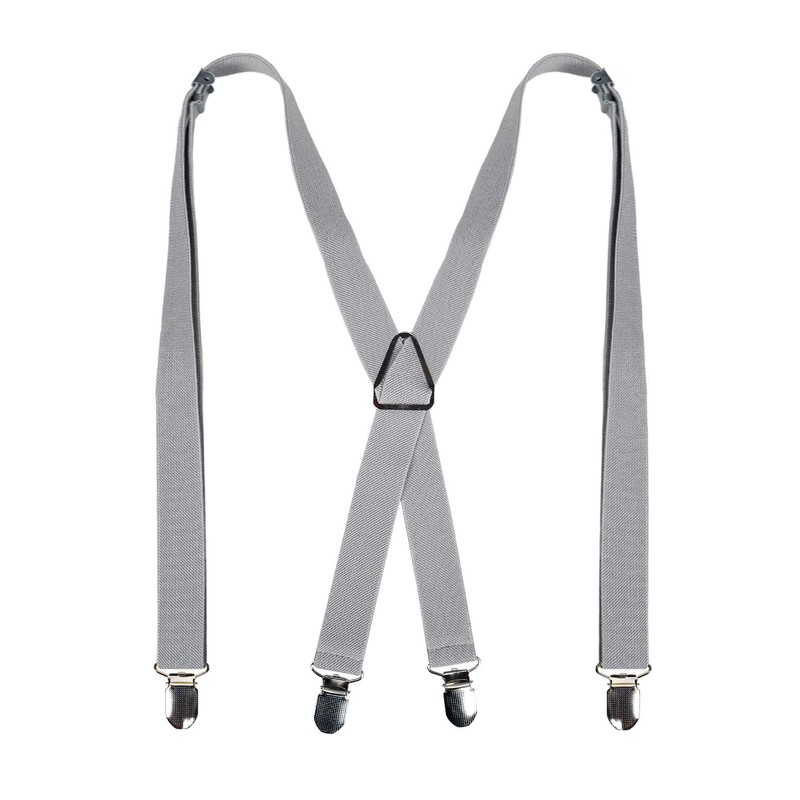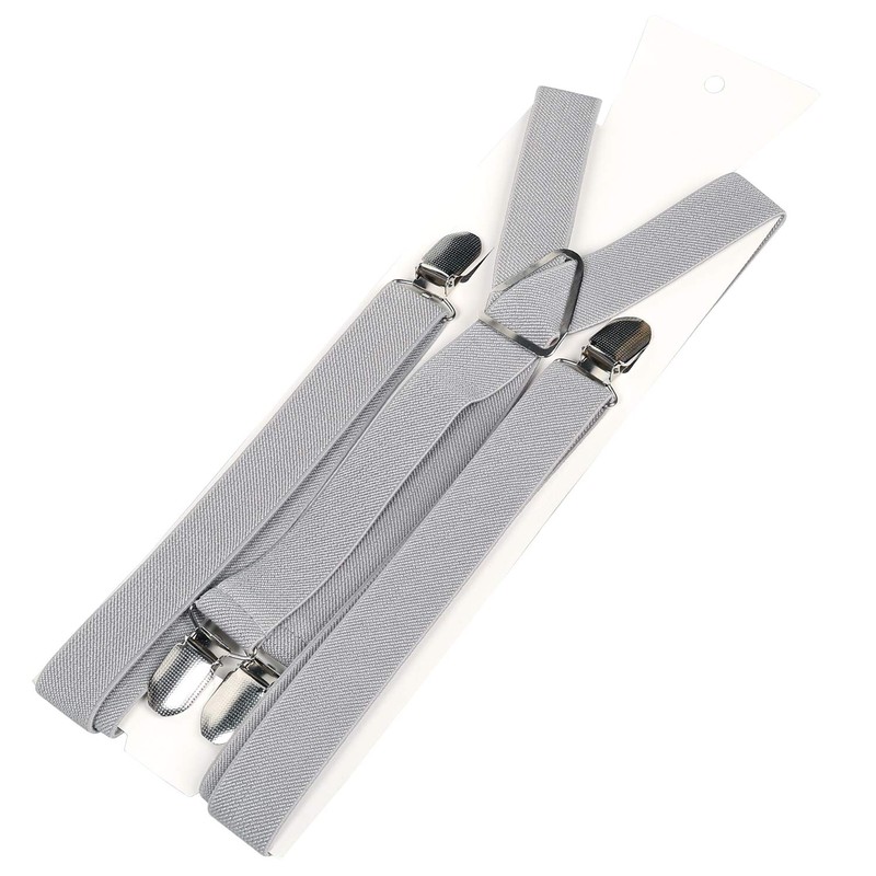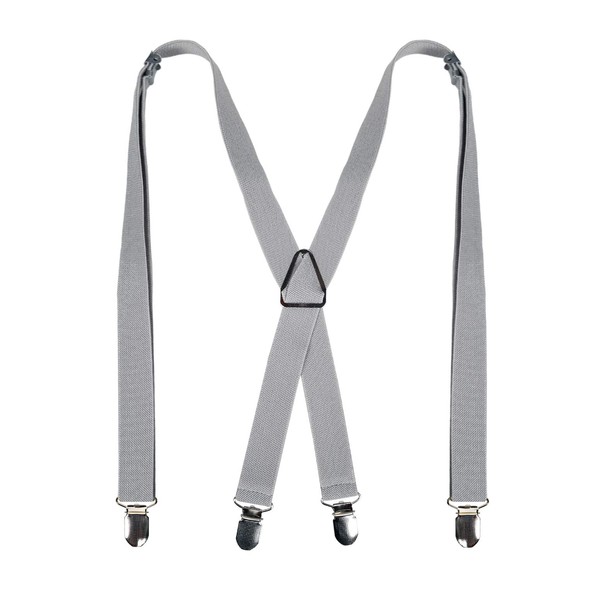 Alizeal Solid Skinny Suspenders X Shape for Men with 4 Clips (Light Gray)