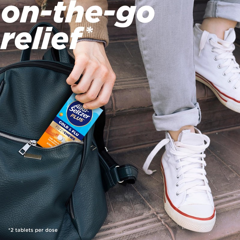 - The next generation of fizz: Alka Seltzer Plus Cold & Flu FizzyChews, a chewable, on the go, fast-acting cold medicine
