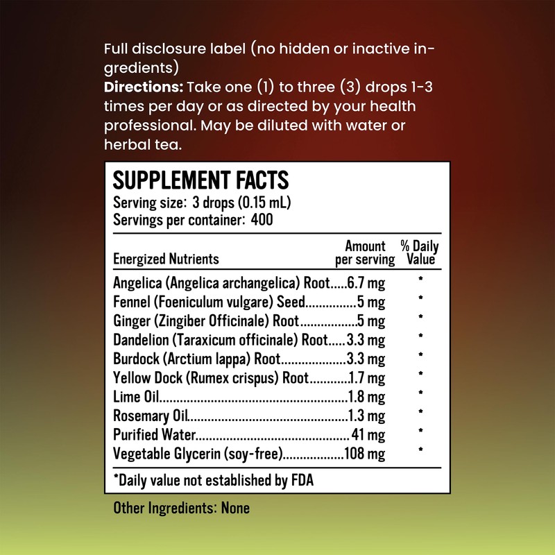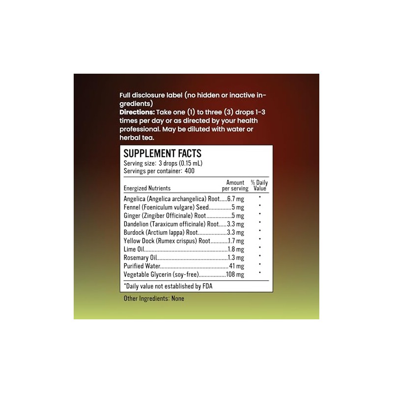 - Angelica (Angelica archangelica) Root Fennel (Foeniculum vulgare) Seed Ginger (Zingiber Officinale) Root Dandelion (Taraxicum officinale) Root Burdock (Arctium lappa) Root Yellow Dock (Rumex crispus) Root