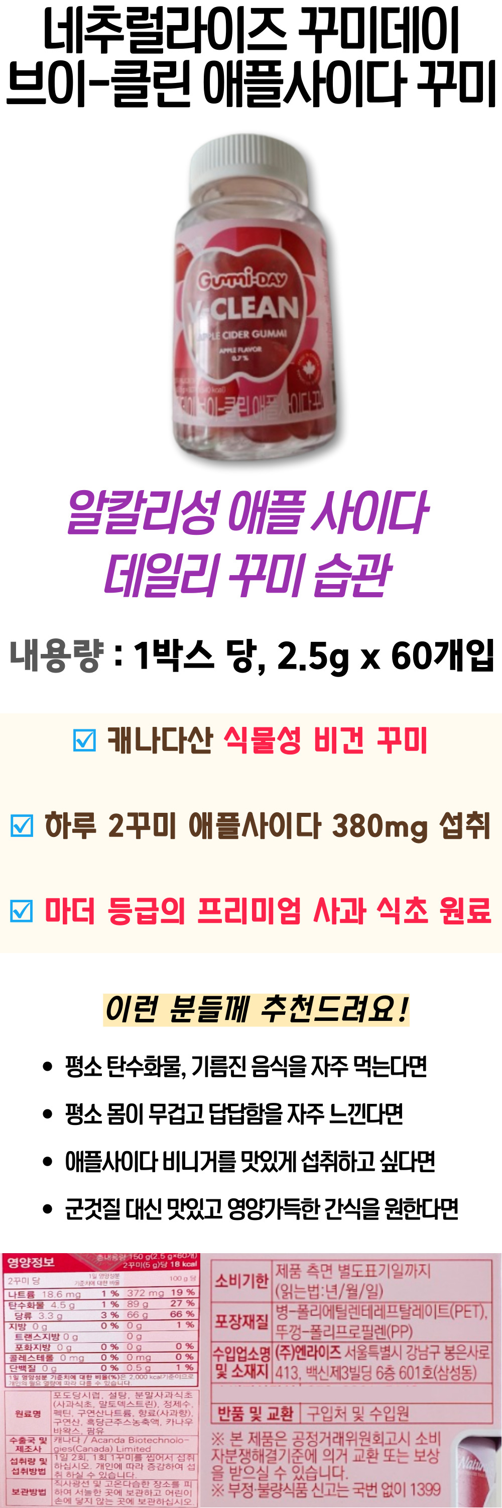 알칼리성 유기산 애사비 사과 식초 꾸미 네추럴라이즈 오가닉산 애플 사이다 비니거 비네거 브이클린 구미