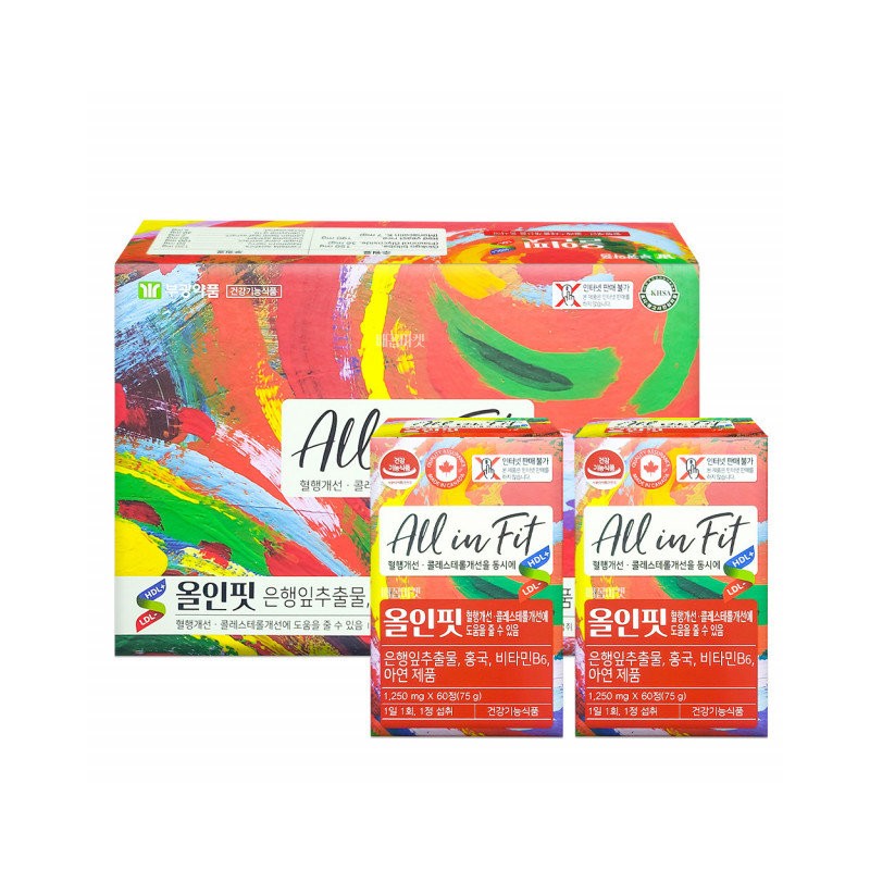 All-In-Fit Red Yeast Monacolin K Ginkgo Ginkgo Leaf Extract Concentration Brain Nutrient Vitamin B6 120 Tablets / 올인핏 홍국 모나콜린k 징코 은행잎 추출물 집중력 두뇌 영양제 비타민B6 120정