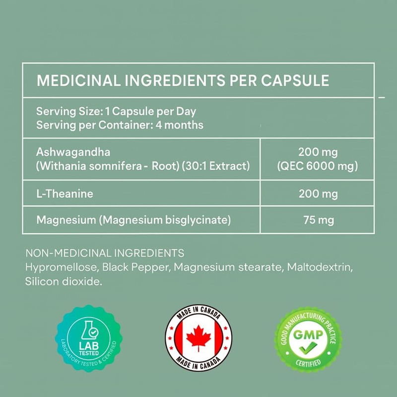 All-in-One Ashwagandha 6000mg with L-Theanine 200mg & Magnesium Bisglycinate – Stress, Sleep, Mood, Calm & Relaxation Support – 4 Month Supply – 1 Capsule Daily – Made in Canada