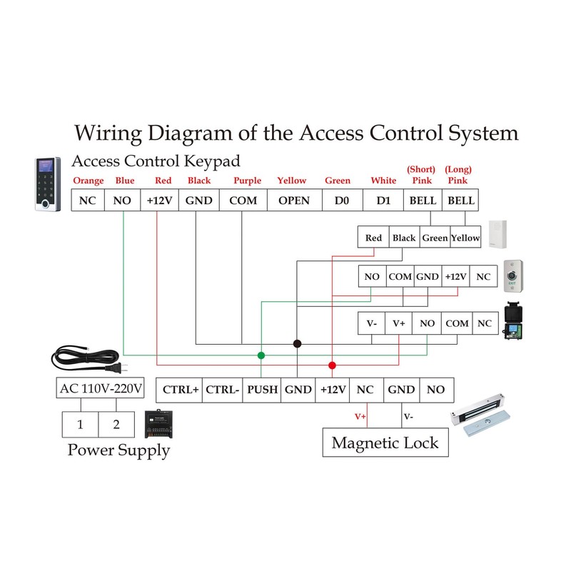 - Complete Access Control Kit - Includes stainless steel keypad, 1200lb electromagnetic lock, power supply control, waterproof exit button, remote controls, doorbell, and power cord - everything you need for a full door access system.
