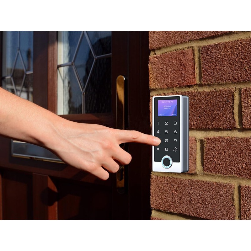 - IP68 Waterproof Metal Keypad - Durable stainless steel touch keypad with LCD screen, it supports fingerprint, RFID card, and PIN code access. Intuitive menu navigation makes setup easy - no software required.