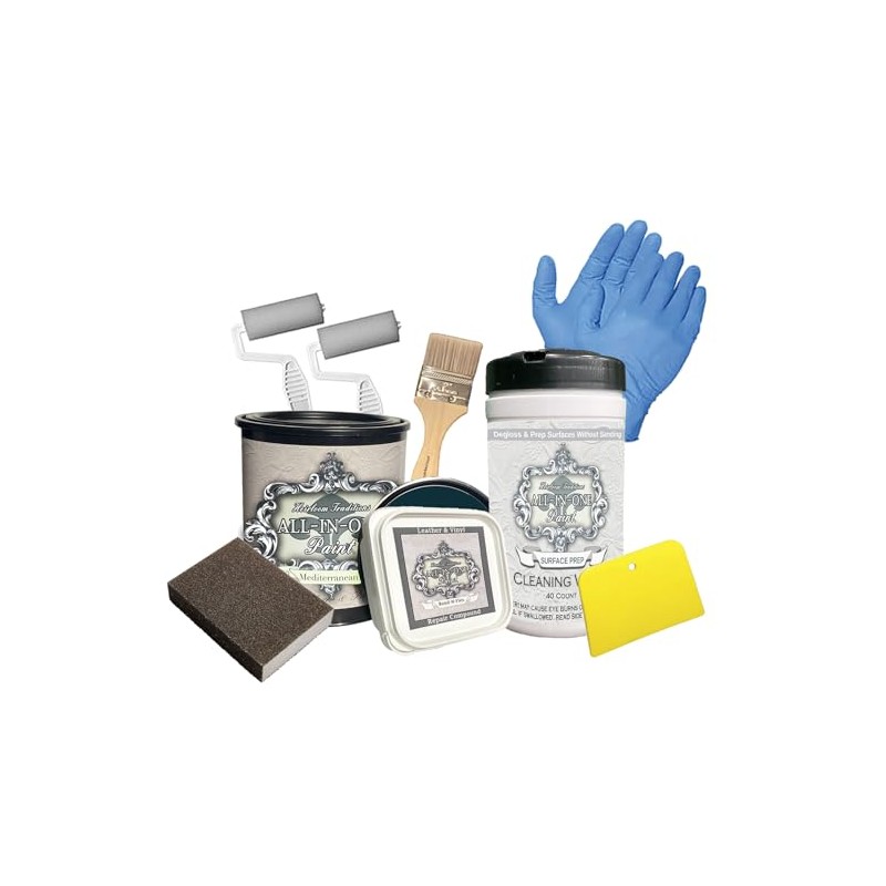 - Leather/Vinyl repair kit includes 1-32oz paint, 1-40ct deglosser wipes, 1 8oz Bond-N-Flex tub, 2 foam rollers, 1 chip brush, 1 filler/scraper, 1 sanding block and 1 set of protective gloves