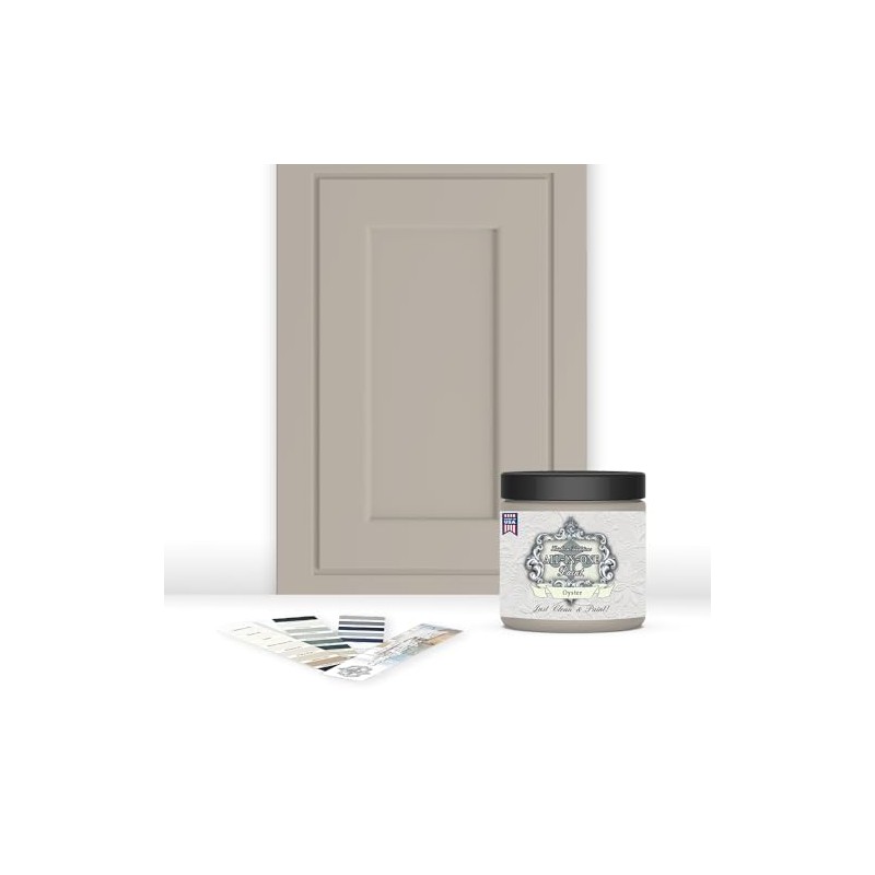 ALL-IN-ONE Paint, Durable cabinet and furniture paint. Built in primer and top coat, no sanding needed. Includes our 30 featured color card - Oyster, 8oz Sample