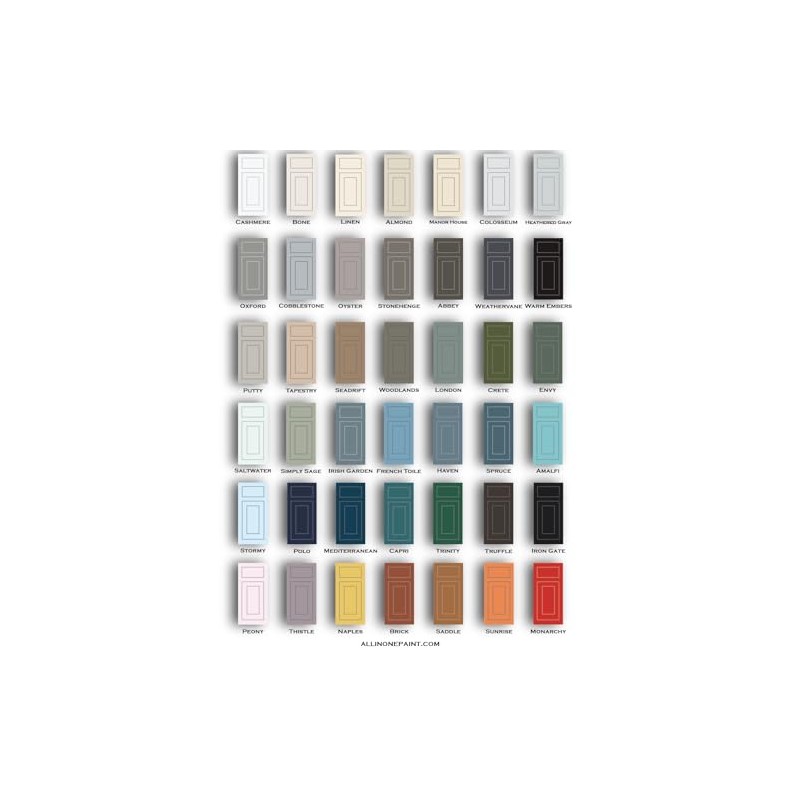 ALL-IN-ONE Paint, Linen (Off White), 8 Fl Oz Sample. Durable cabinet and furniture paint. Built in primer and top coat, no sanding needed.