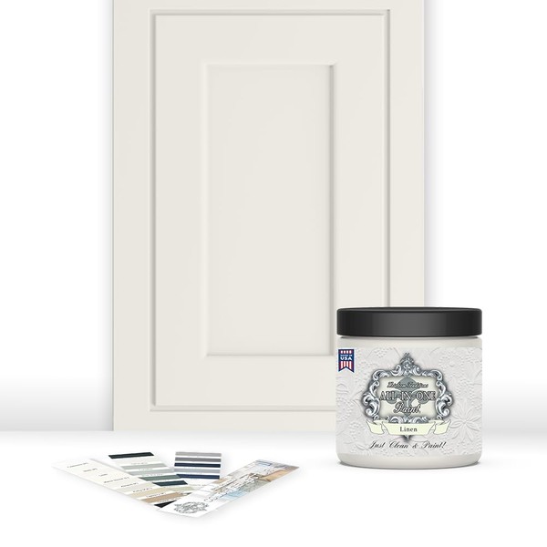 ALL-IN-ONE Paint, Durable cabinet and furniture paint. Built in primer and top coat, no sanding needed. Includes our 30 featured color card - Linen (off-white), 8oz Sample
