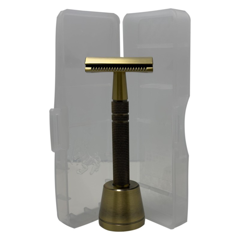 - Full Metal Body|Solid Brass Handle & Zinc Alloy Head: Crafted from corrosion-resistant brass (handle) and zinc alloy (head). With a 121g heft (without blade base), its substantial weight ensures steady control and efficient shaving, exuding masculine sophistication