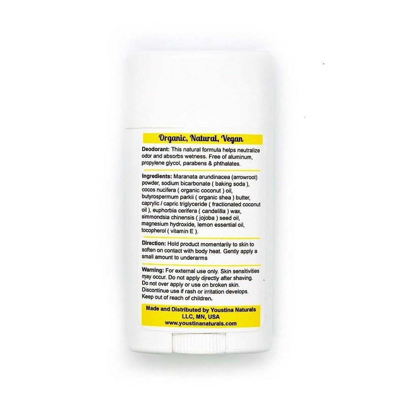 All Natural Handmade Deodorant, Organic, Vegan, Paraben Free and Aluminum Free with Lemon Essential Oil and Magnesium Hydroxide 3 oz by Youstina Naturals