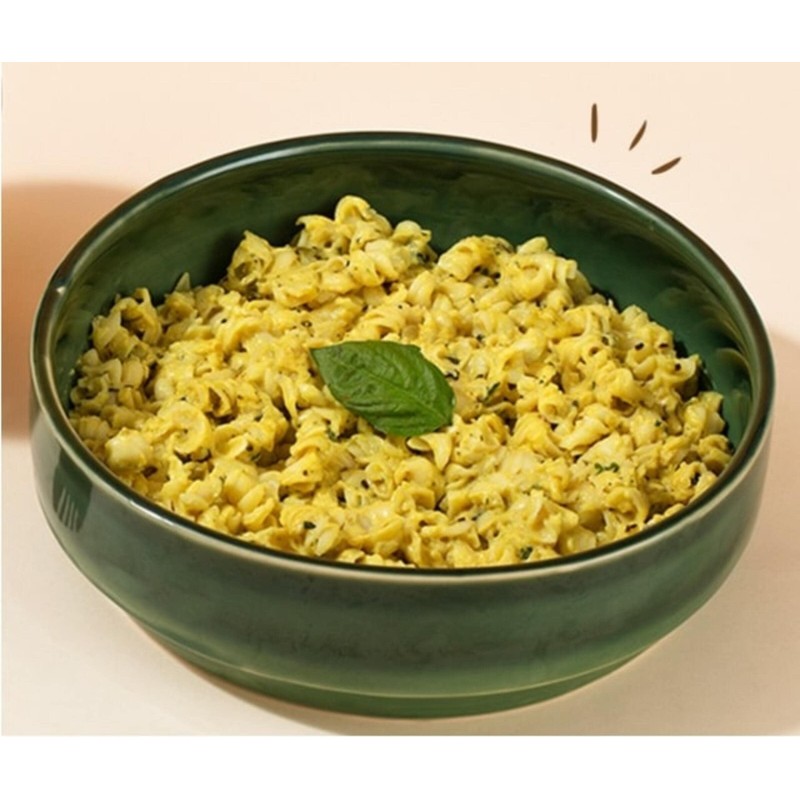 - This rich, freshly made cheesy sauce is tossed with fresh basil leaves, baby spinach (for enhanced nutrition, protein) and combined with our signature durum wheat fusilli as well as fresh herbs