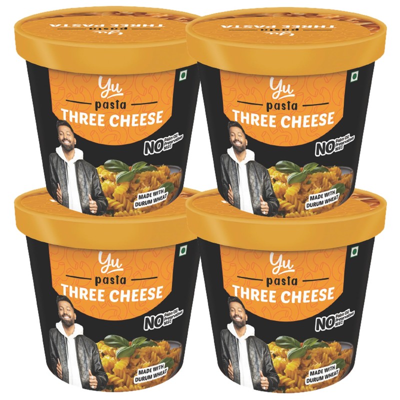 All Natural Pasta Cups – Freeze Dried Food - Pack of 4 - No Preservatives - 100% Natural Ingredients & Vegetarian - Ready to Eat Meals in 4 mins - 800 GMS (Three Cheese Sauce) - Yu Foodlabs