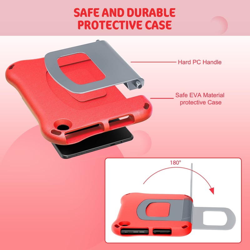 - [180°Foldable Kickstand] This fire tablet 8 case designed with a 180 degree foldable holder stand on the back of the case, allows you to set up multiple angles and gives you the hands-free convenience when watching videos and movies.