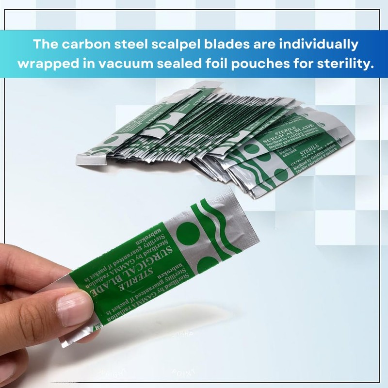 - ✅ CARBON STEEL BLADES: The scalpel blades are individually wrapped in vacuum sealed foil pouches for sterility. The disposable scalpel blades are sterilized by gamma radiation.This economical set is a great buy for designers, creative hobbyists, graphic artists, model makers and more.