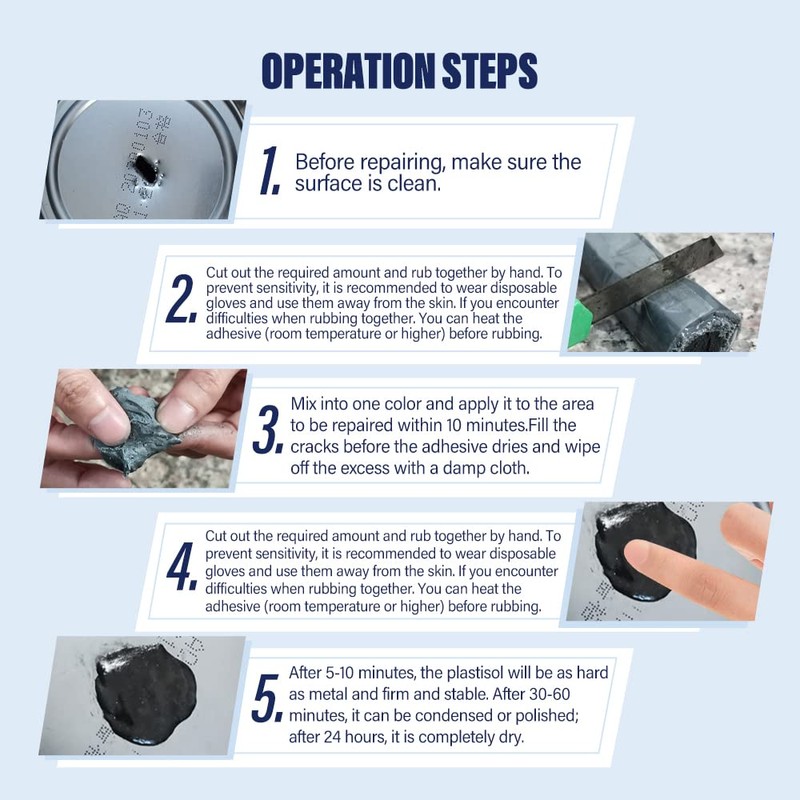 - 【Wide application】 After kneading evenly,it is used to repair pipes,drainage pipes, flowerpots, faucets, water tanks, fuel tank leaks, industrial maintenance, tool crack repair, flooring, door seams, auto parts, swimming pool ceramic decoration, etc.