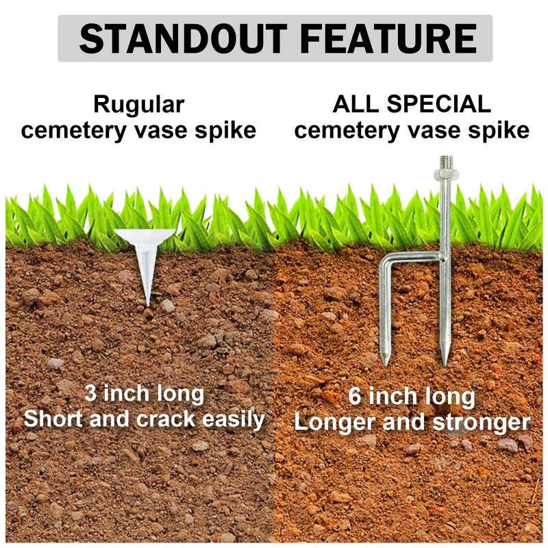 - Memorial Vases for Gravesites with 6 Inches Spikes: Securely plant the 6 inches sturdy spike into the ground with deeper insertion, you can get a more stable standing position.