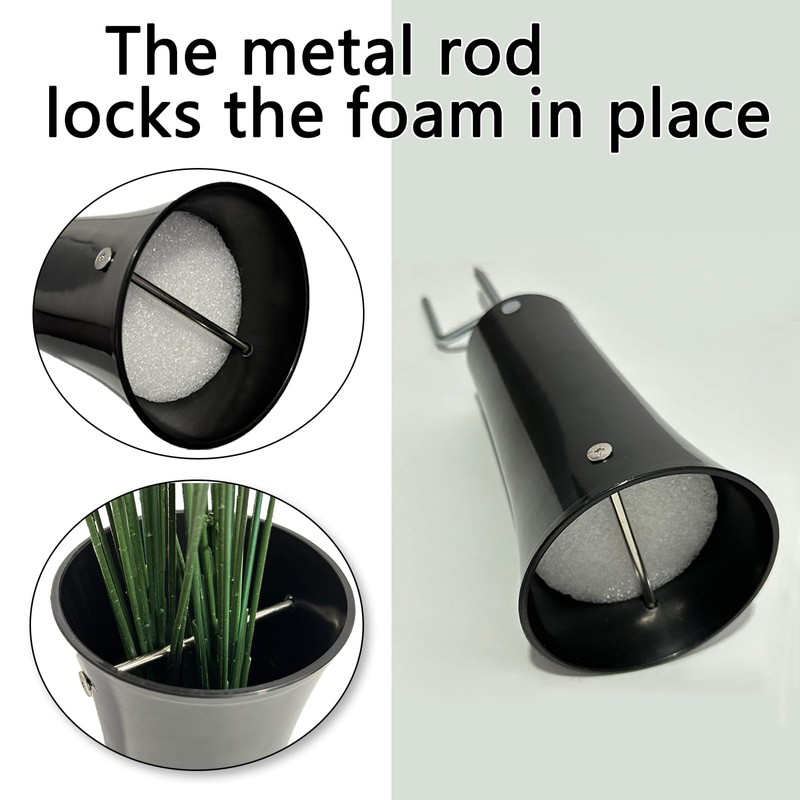 Tombstone vase holder with Foam: A metal rod along the middle of the headstone vases for graves hold down the foam to make sure your flowers don't blow away. Tombstone vases for graves with additional high-quality dry foam only for artificial flowers. If you need to arrangements fresh flowers, you can put water in the memorial vase.