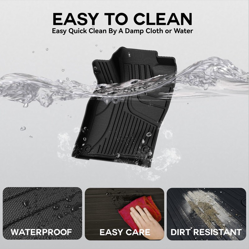 Effortless Cleaning: Say goodbye to complicated cleanup. A quick rinse with a garden hose or a wipe with a damp cloth is all it takes to keep your mats looking brand new. Spend less time cleaning and more time enjoying the drive.