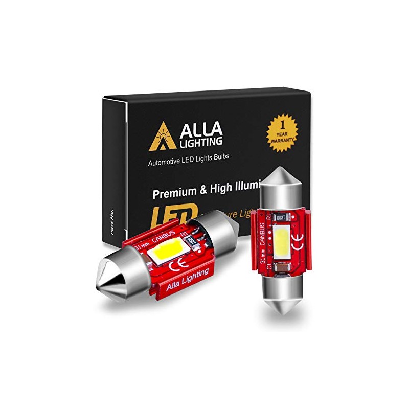 Alla Lighting 800lm Xtreme Super Bright Festoon 31MM DE3175 DE3022 LED Bulbs Replacement for Cars Trucks Interior Map Dome Trunk Courtesy Lights DE3022, 6000K Xenon White