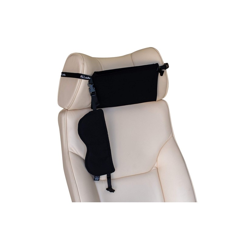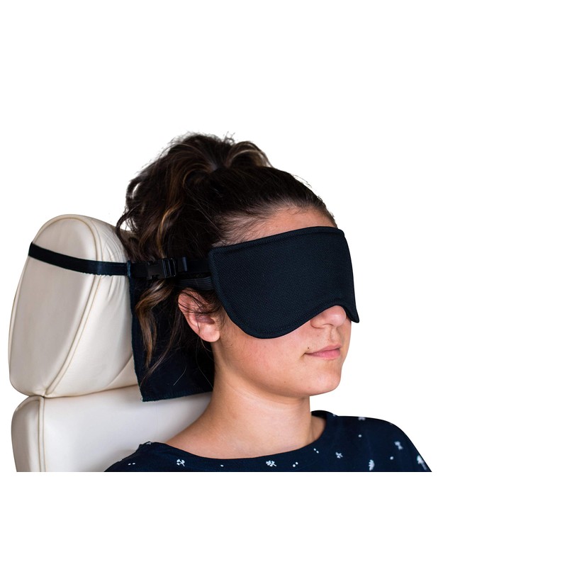 ALLasleep's patented technology allows you to sleep while traveling. No need to bring a big pillow on the plane with this travel accessory. Our eye mask keeps your head to the headrest, providing the best head and neck support solution on the market. Inspired and approved by many occupational therapists, the ALLasleep eliminates the tilting of the head and keeps it upright when sleeping. Buy yours and get rested while traveling. The lightweight and comfortable eye mask will help you sleep in a comfortable Position on the plane, even if your seat doesn't recline. Get the best sleep on a plane, no matter where you're seated. The ALLasleep is fully adjustable to your seat and keeps your head straight, so that you can sleep in a position that suits you. Use it on the train, the car and the plane even on seats with a screen at the back. This excellent travel companion is washable and compact. It is easy to transport and you can machine wash it when you return from your trip.