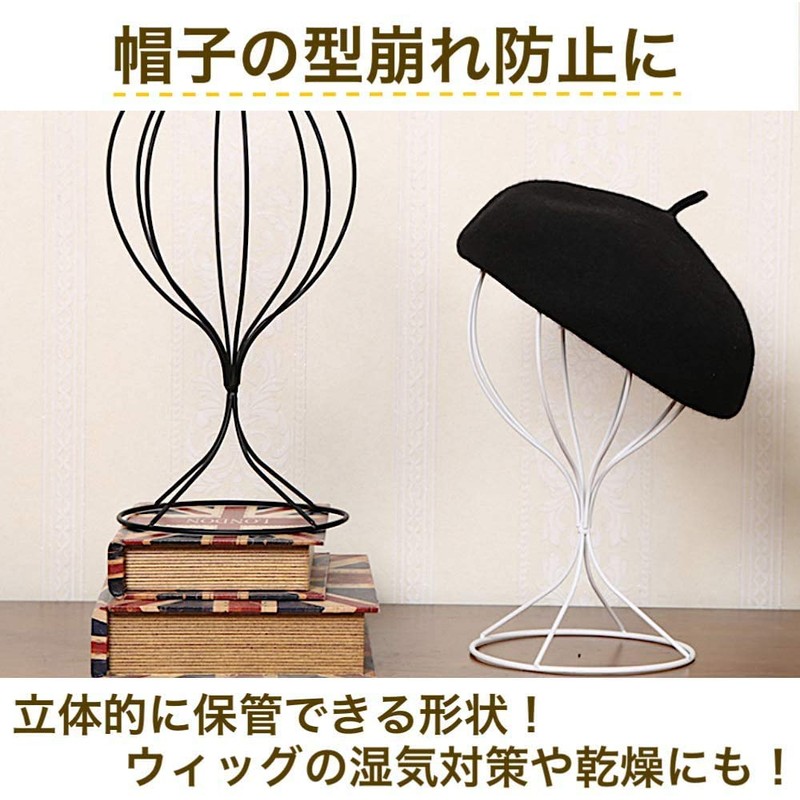 Hat stand for storing hats and wigs. The rounded shape allows the wig to be hung in three dimensions. It also has good ventilation, so it can be used to measure moisture and dry after washing. The material is made of iron, so it is stable and does not tip over. You can also use it to store it in your room or display in a shop so you can use it to store your precious hat. Main unit x 1; Size: Diameter 6.3 inches (16 cm), Height 11.8 inches (30 cm), Color: