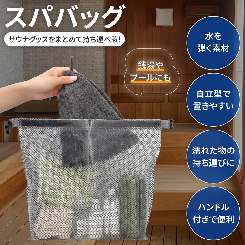 - Spa bag that can be carried compactly in one place, such as body towels, sauna hats, and mats. Transparent and easy to see contents