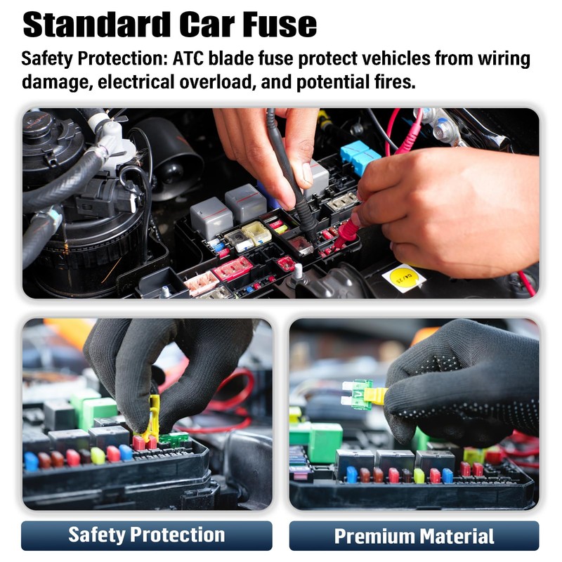 Safety Protection: ATC blade fuse protect vehicles from wiring damage, electrical overload, and potential fires.