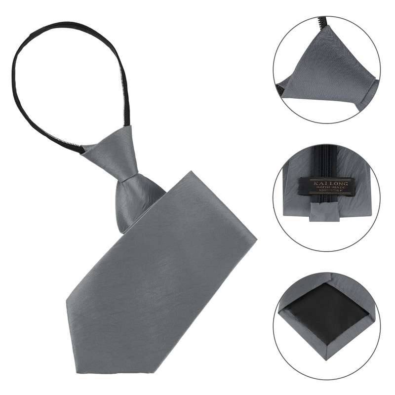 Allegra K Men's Pre-Tied Adjustable Zip Plain Tie Tie, gray
