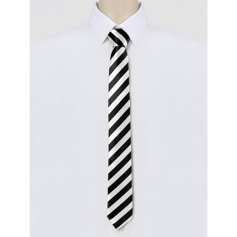 - Narrow width, this polyester necktie has a silky finish and stripe patterns.