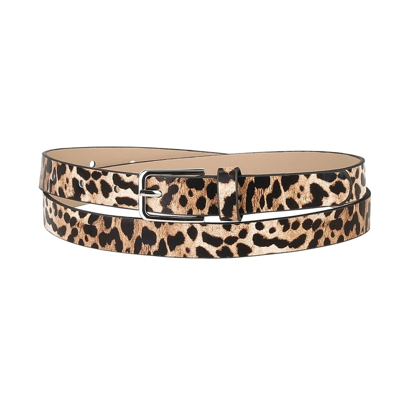Allegra K Women's Single Pin Buckle Cute Animal Print Thin Faux Leather Waist Belt, Leopard Pattern