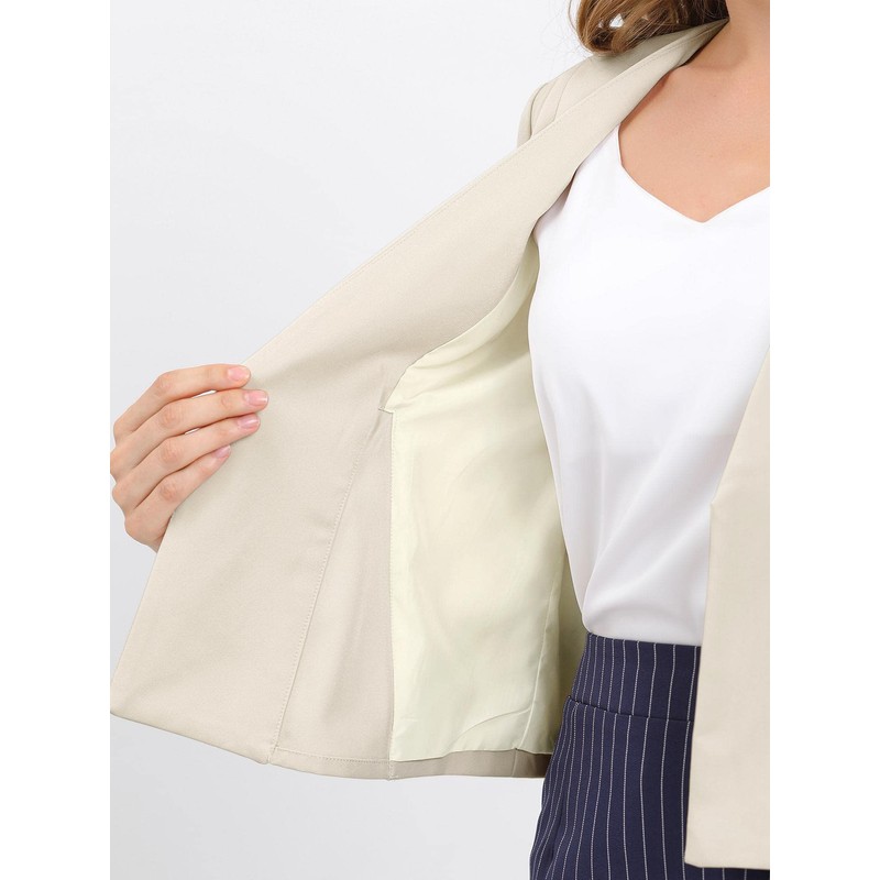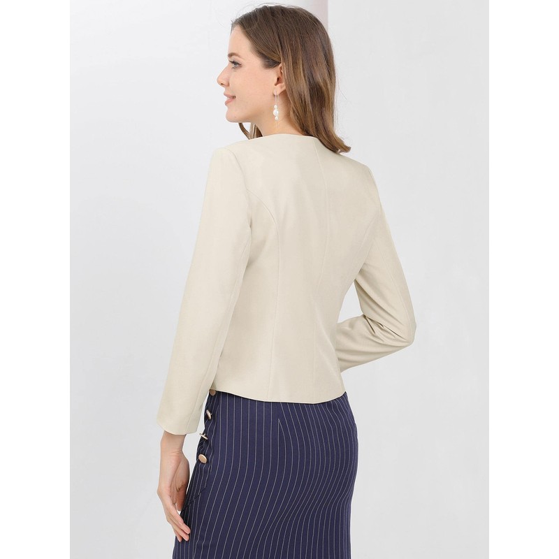 Allegra K Women's Work Office Open Front Zipper Collarless Cropped Blazer Medium Beige